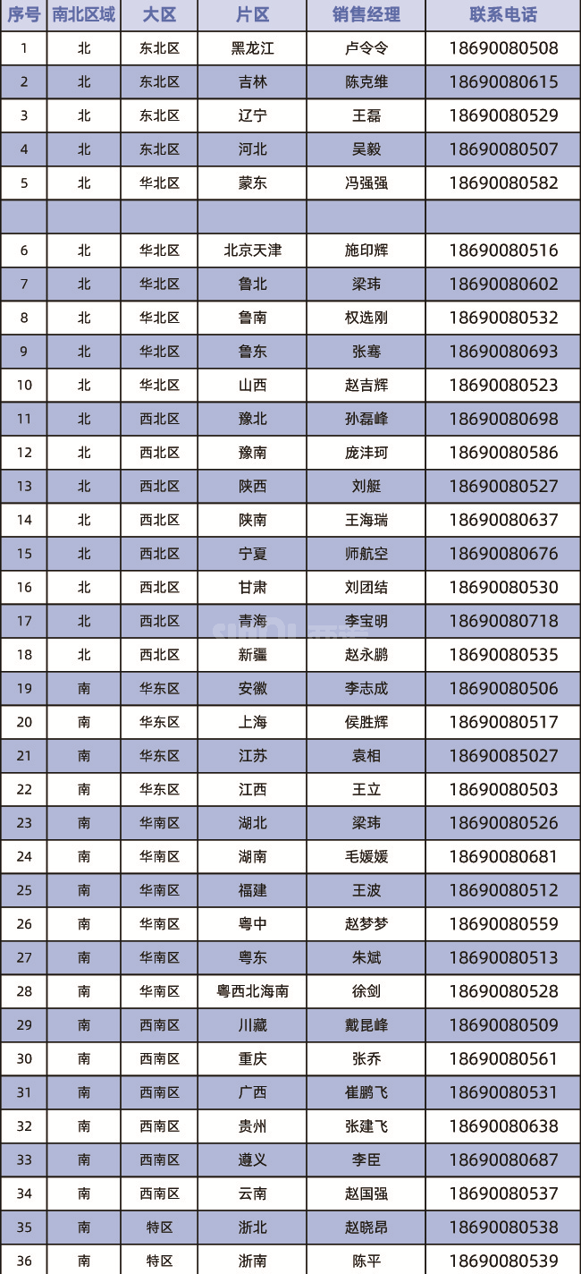 全国各片区销售经理联系方式