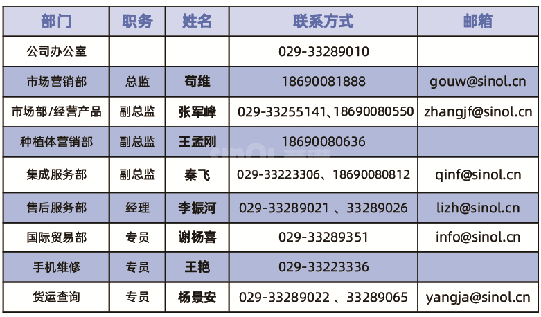 业务部门联系方式