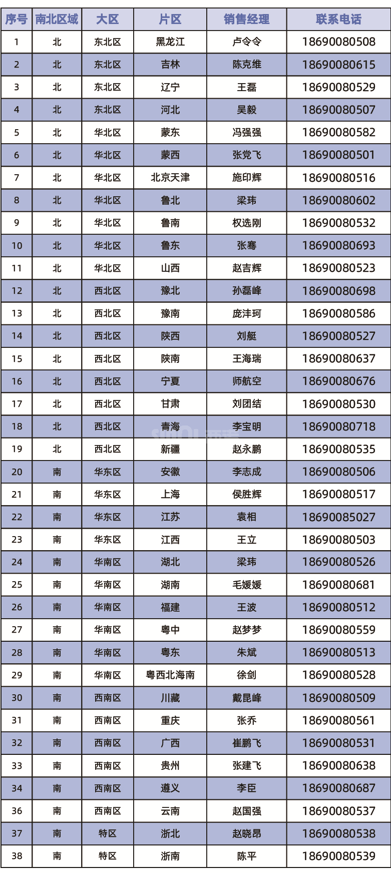 全国各片区销售经理联系方式